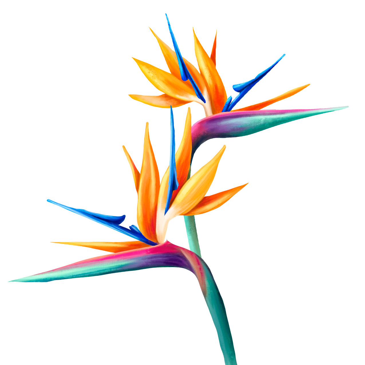 Tropicana depicts the lush beauty of tropical nature, exuberant colors and striking forms of tropical flowers and birds.
